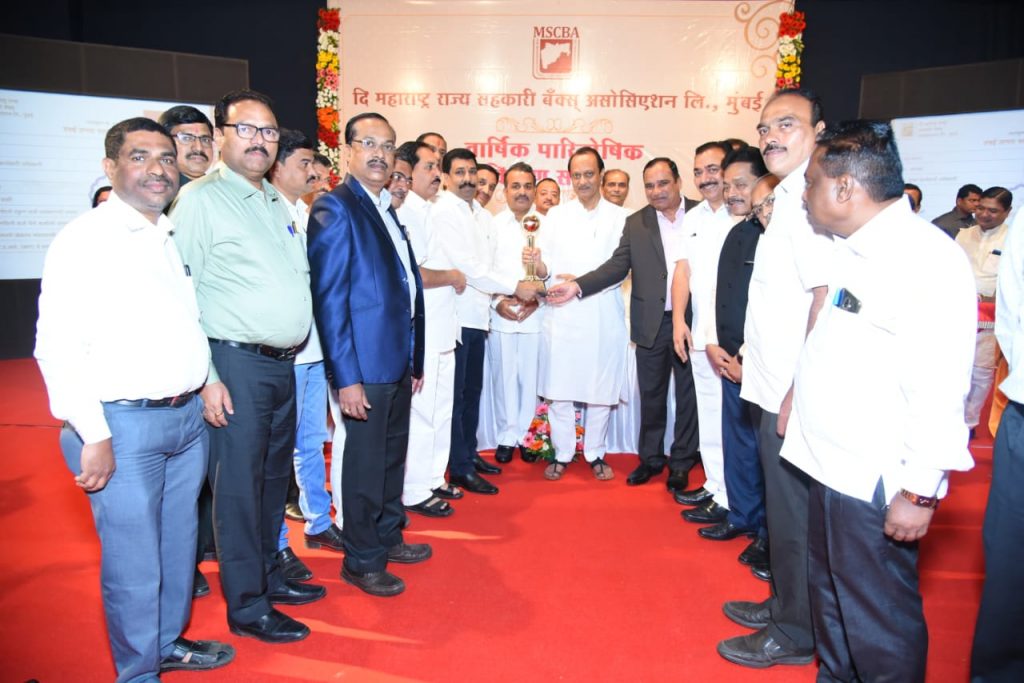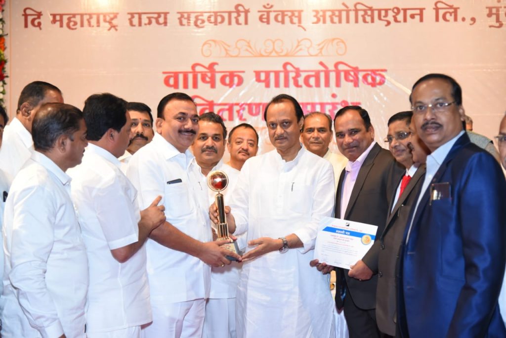 दि महाराष्ट्र राज्य सहकारी बँक्सअसोसिएशन मार्फत ``उत्कृष्ट नागरी सहकारी बँक`` पुरस्कार सन २०१८-१९ , माननीय उपमुख्यमंत्री अजितदादा पवार यांचे हस्ते मिळाला