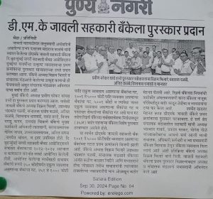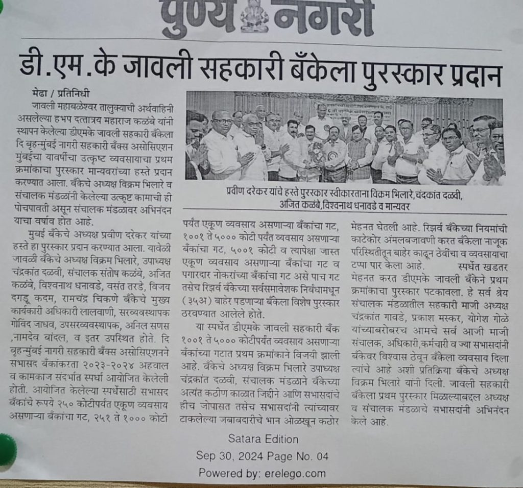 डी.एम.के. जावळी सहकारी बँकला पुरस्कार प्रदान